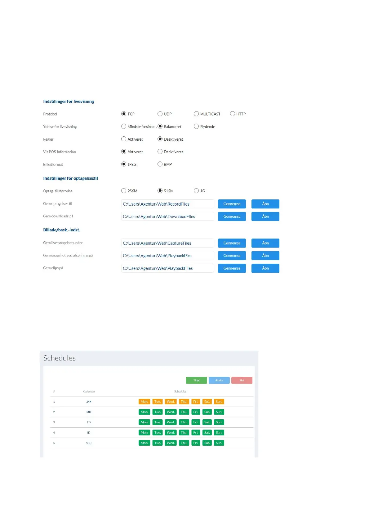 Gem live-snapshots på: Vælg stien til lagring af billeder via browser-live-overfladen.