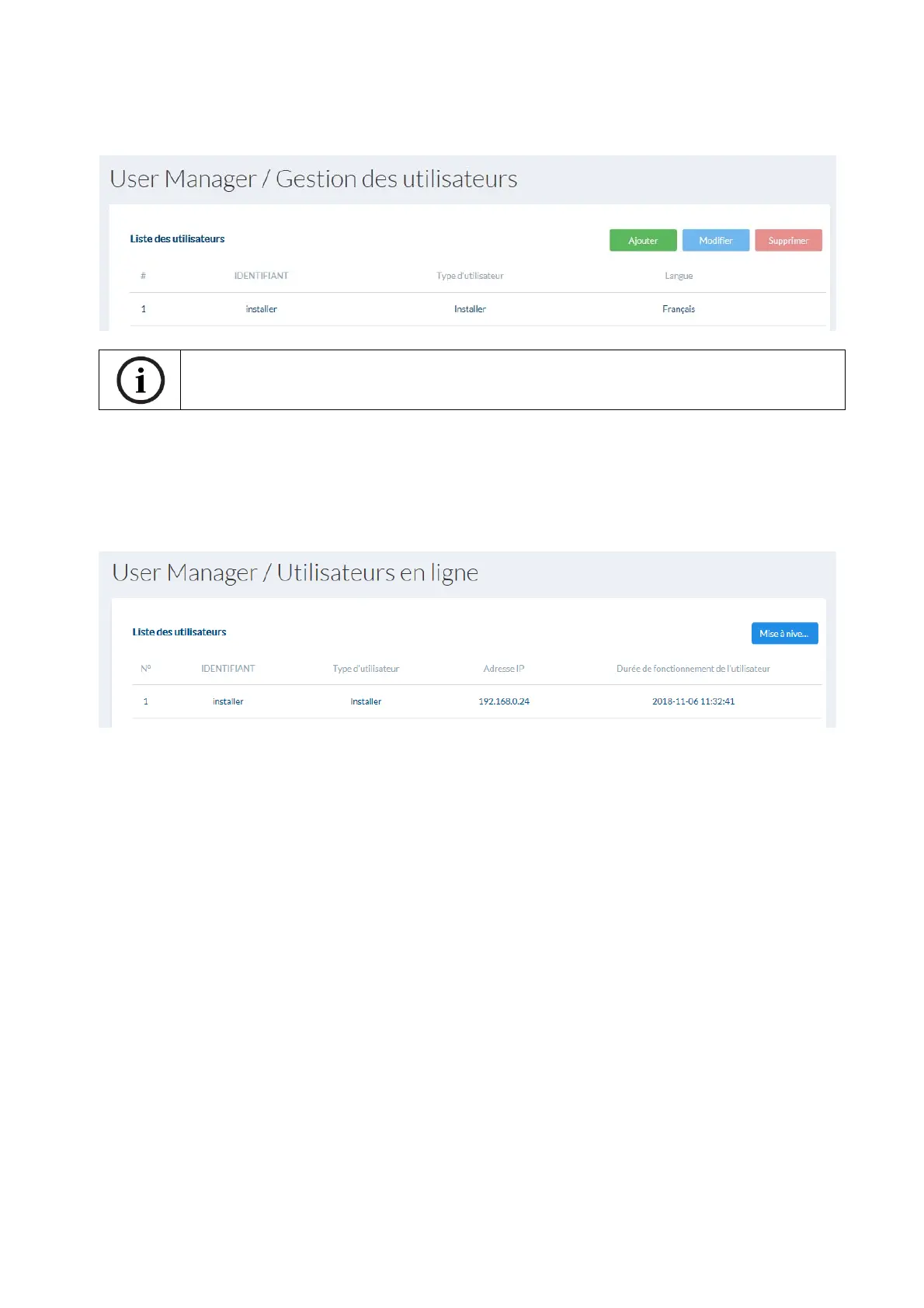 Affichage d’informations sur les utilisateurs actuellement connectés.