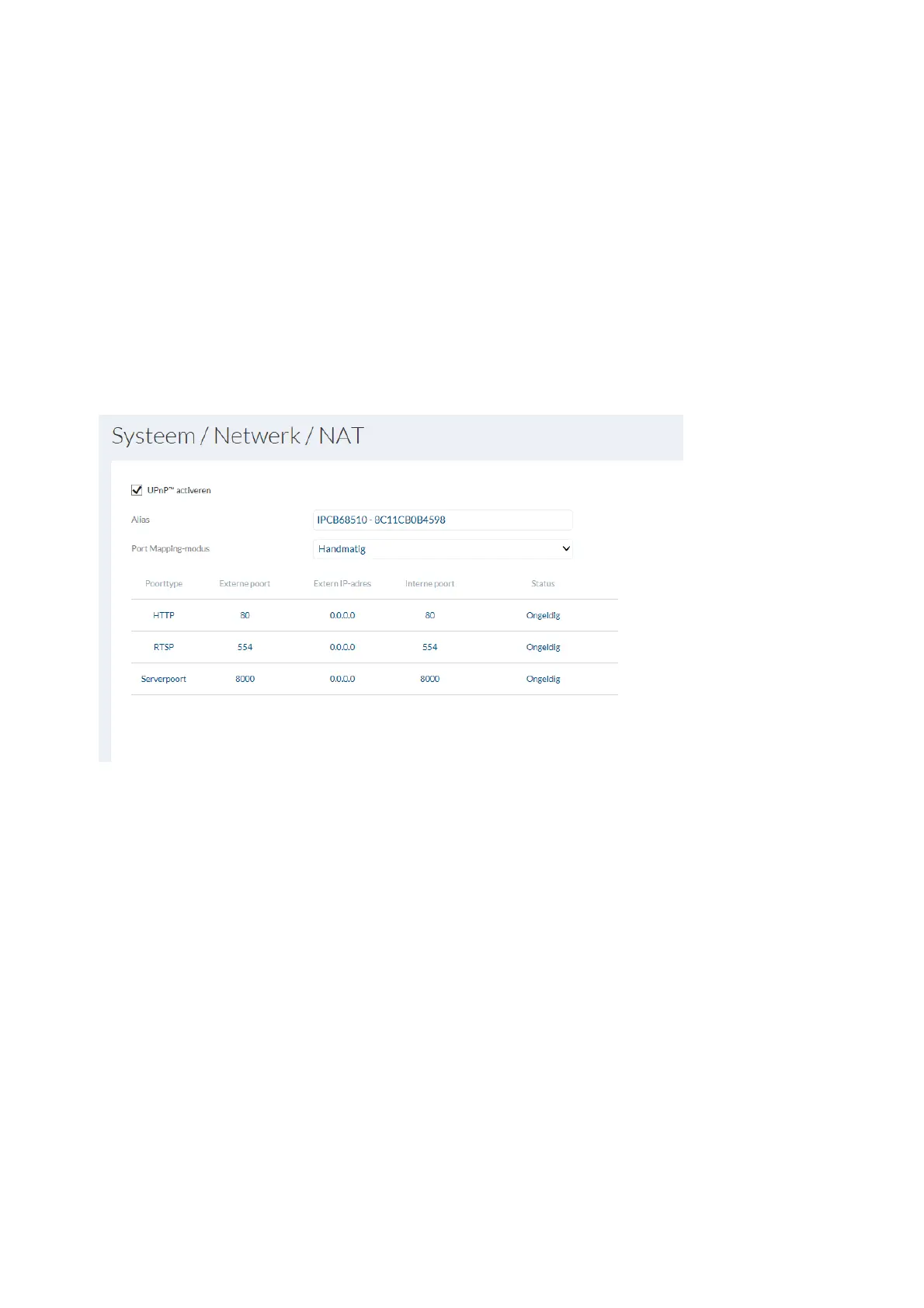 UPnP activeren: Activeren of deactiveren van de UPnP-functie. Bij geactiveerde