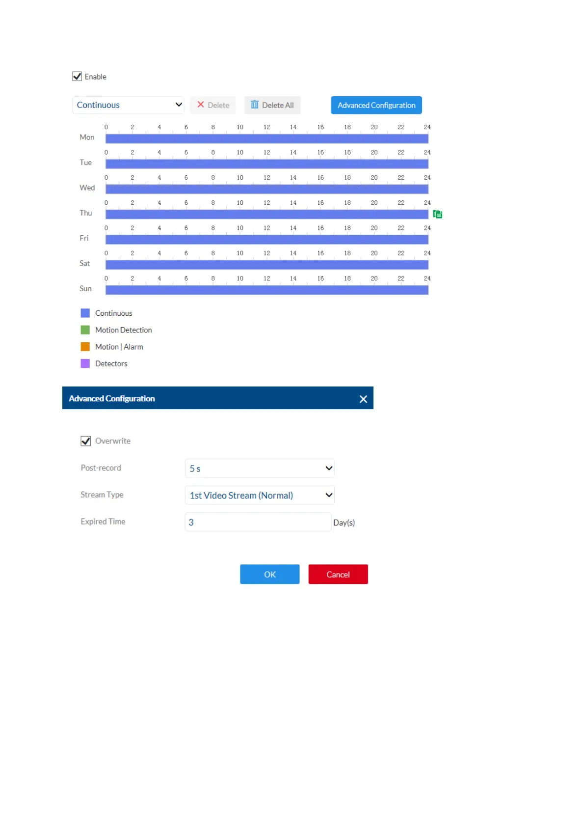 Enable sequential single frame recording: You can determine the schedule for storage here.