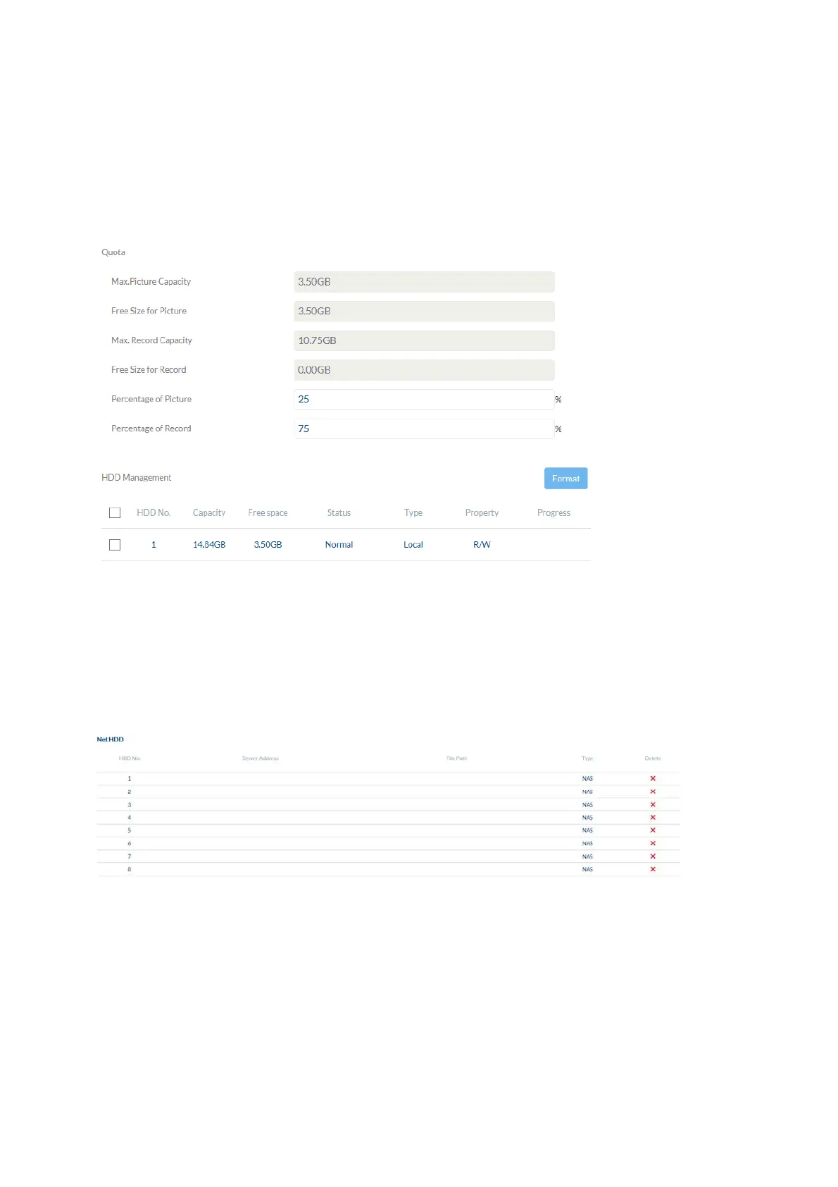 NAS: configure up to 8 NAS devices. Click in a row to specify server address,