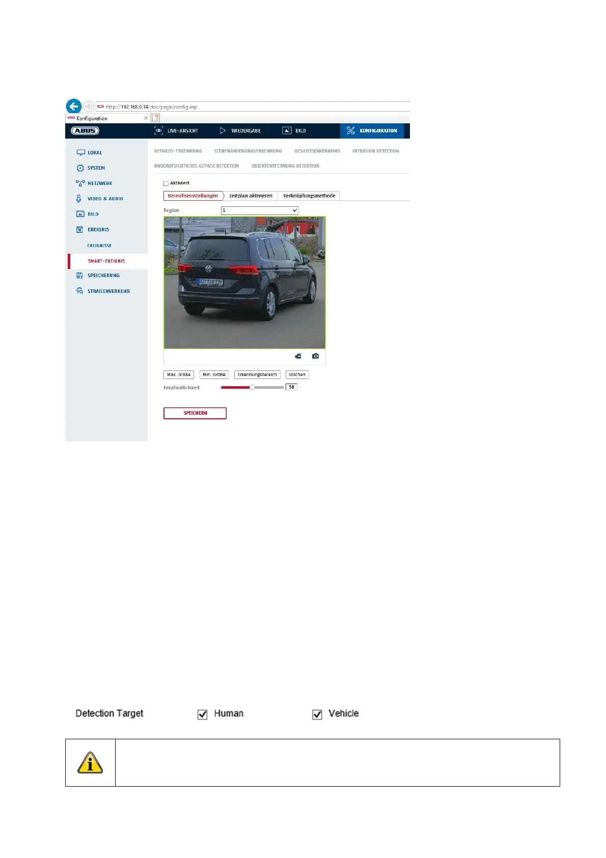 Min. size: This function determines the minimum size of the object to be detected. This is done