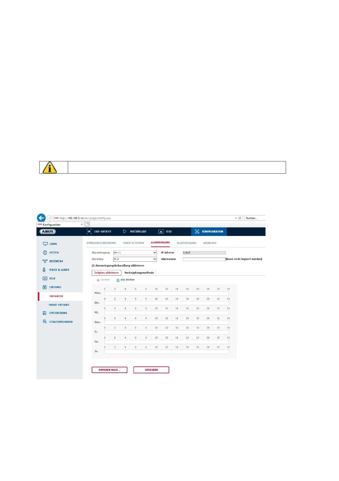 comportamento dell'uscita allarme può essere impostato in "Eventi / Uscita di allarme".