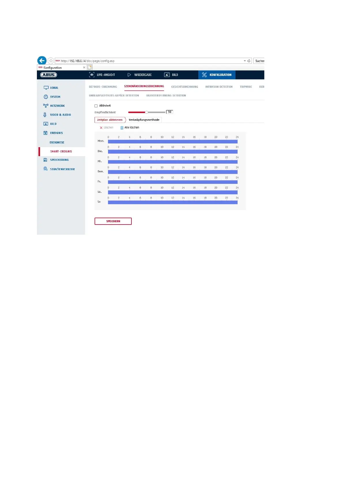 Wochentagen und Uhrzeiten der Alarmausgang aktiv sein soll.