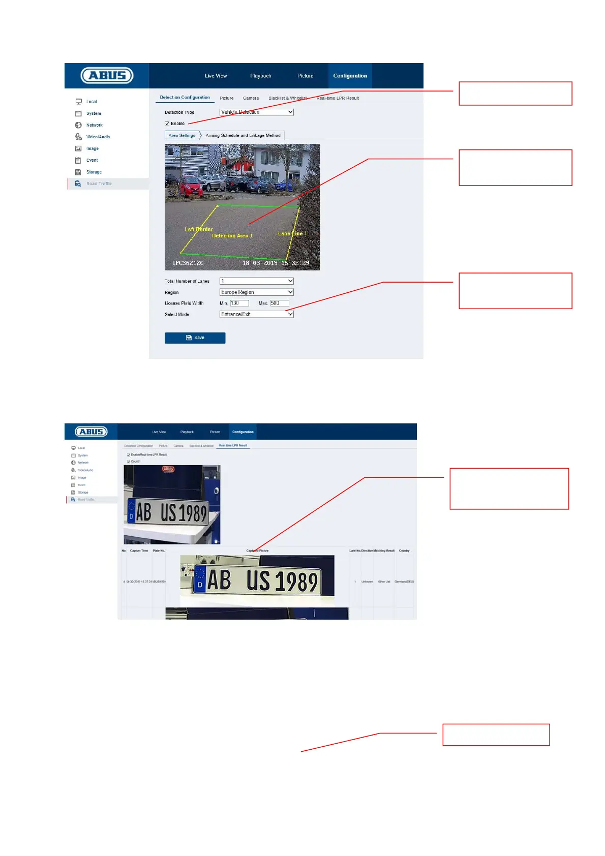 Recognition »), qui affiche dans une liste toutes les plaques d’immatriculation détectées. Il n’est