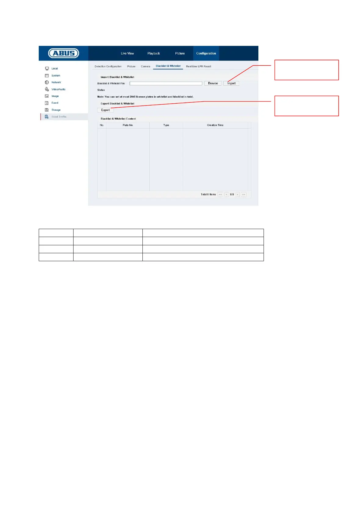 Importeer deze lijst in de camera. Vervolgens kunnen onder het punt "Detection Configuration ->