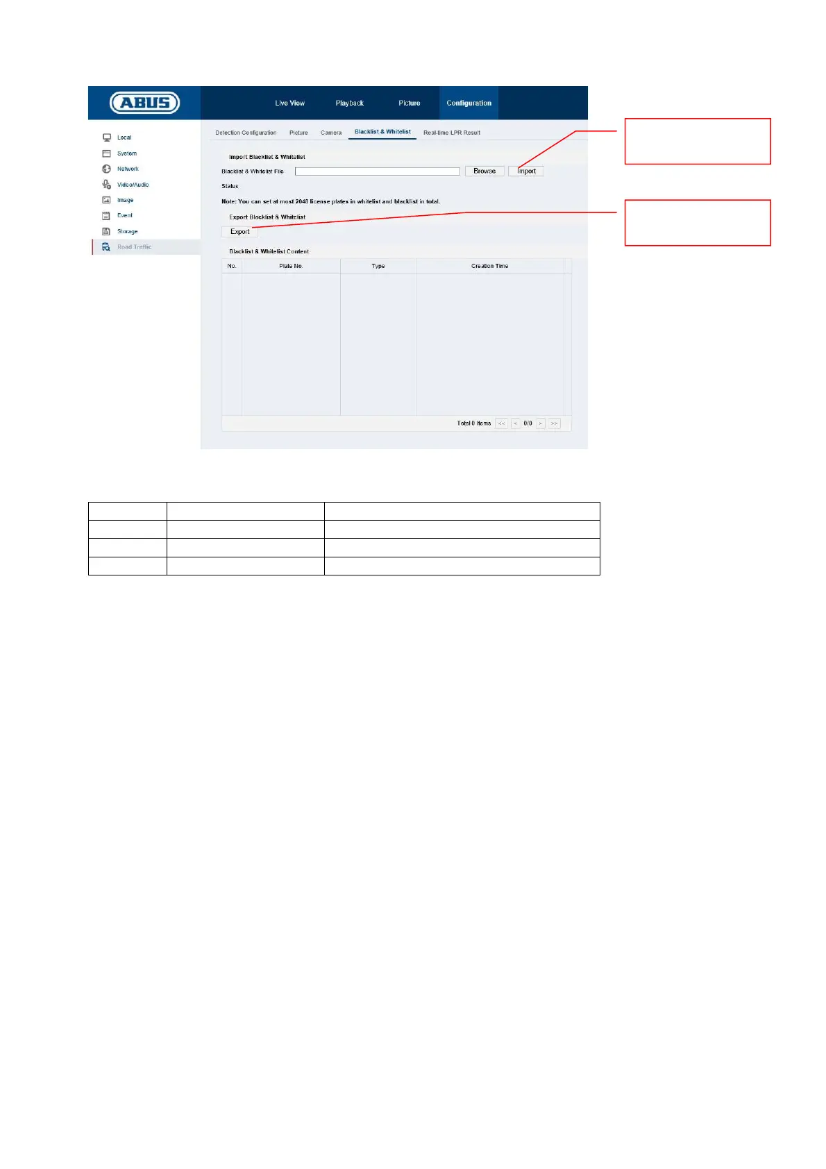 Importare l’elenco nella telecamera. È poi possibile programmare diverse azioni in “Detection