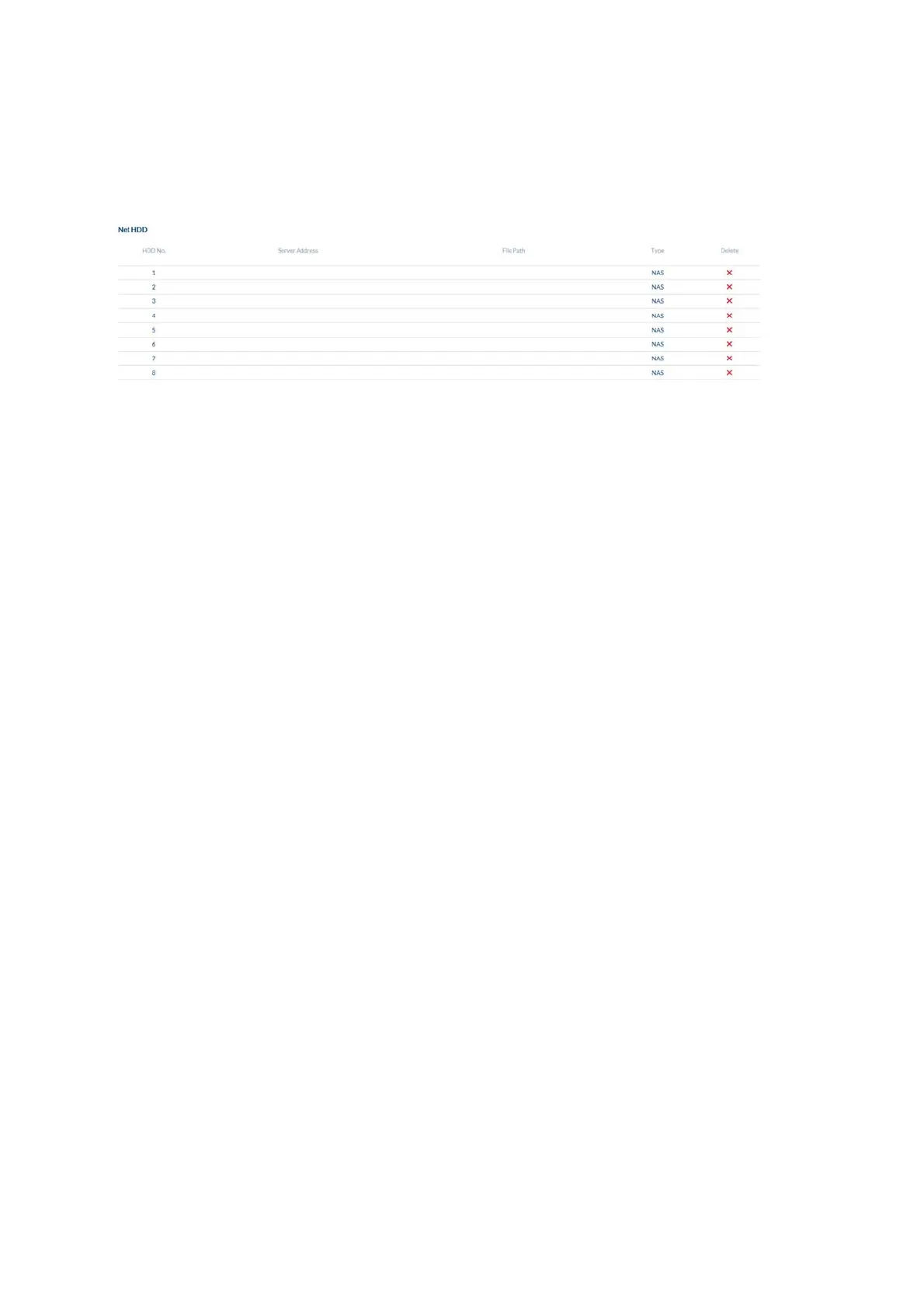 NAS: configure up to 8 NAS devices. Click in a row to specify server address,
