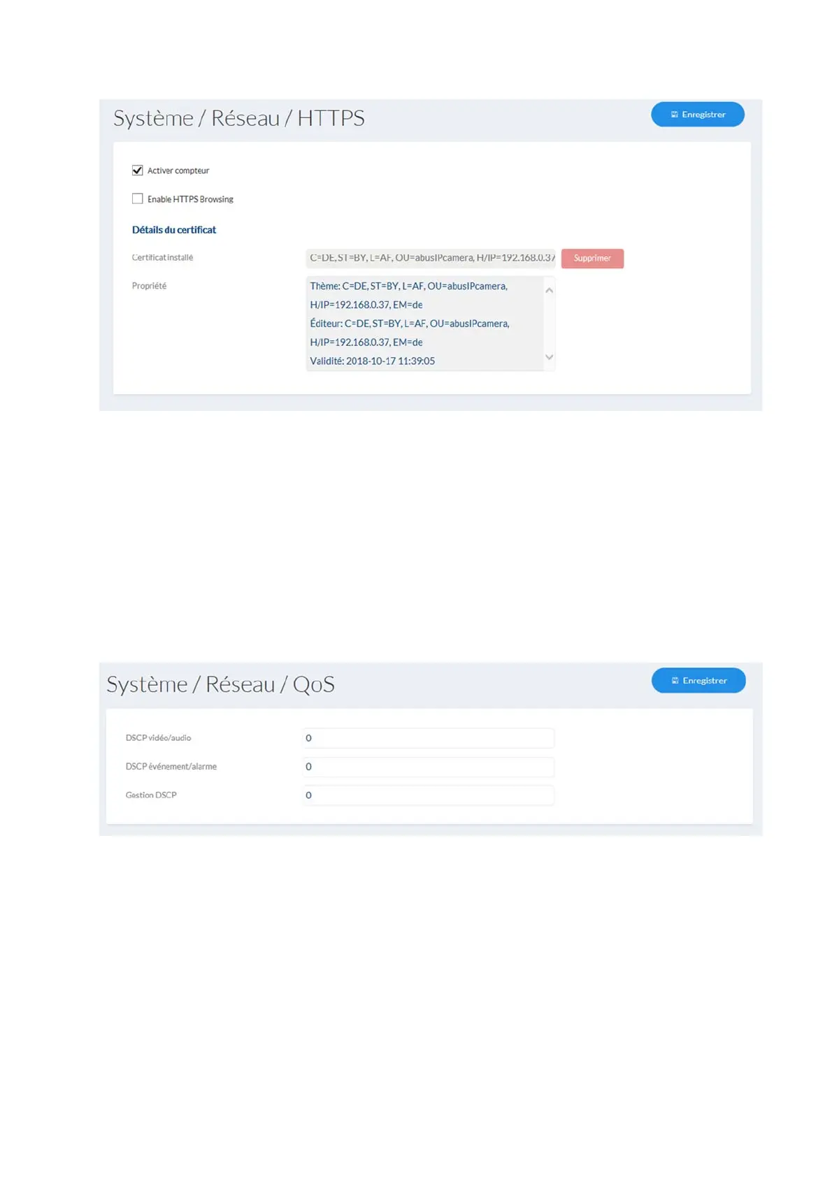 DSCP événement / alarme : Valeur DSCP pour données événement / alarme