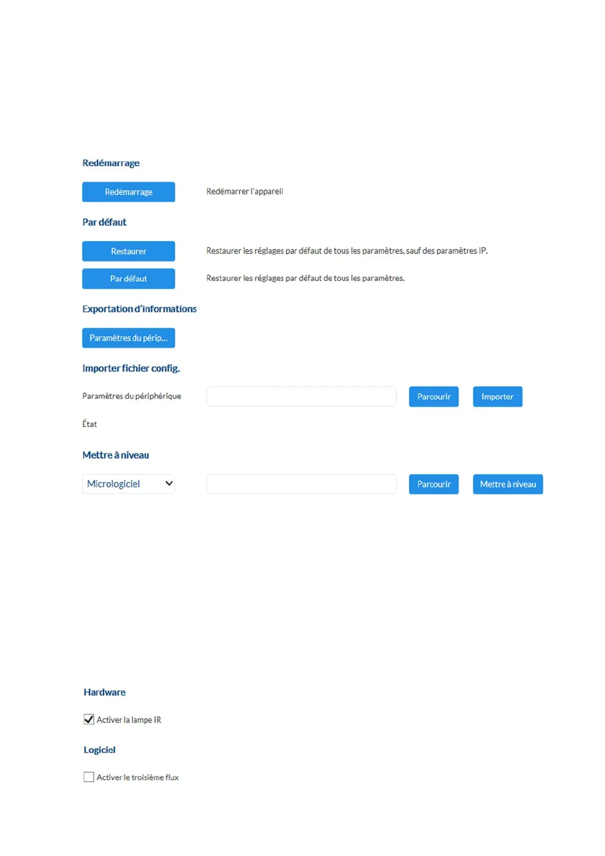 Mise à jour du firmware : Cette fonction permet de mettre à jour le firmware de la