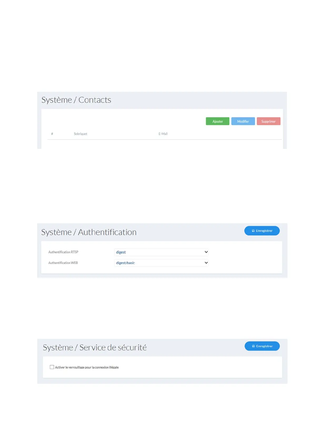 Authentification RTSP/Web : digest : Le nom d’utilisateur et le mot de passe sont dotés