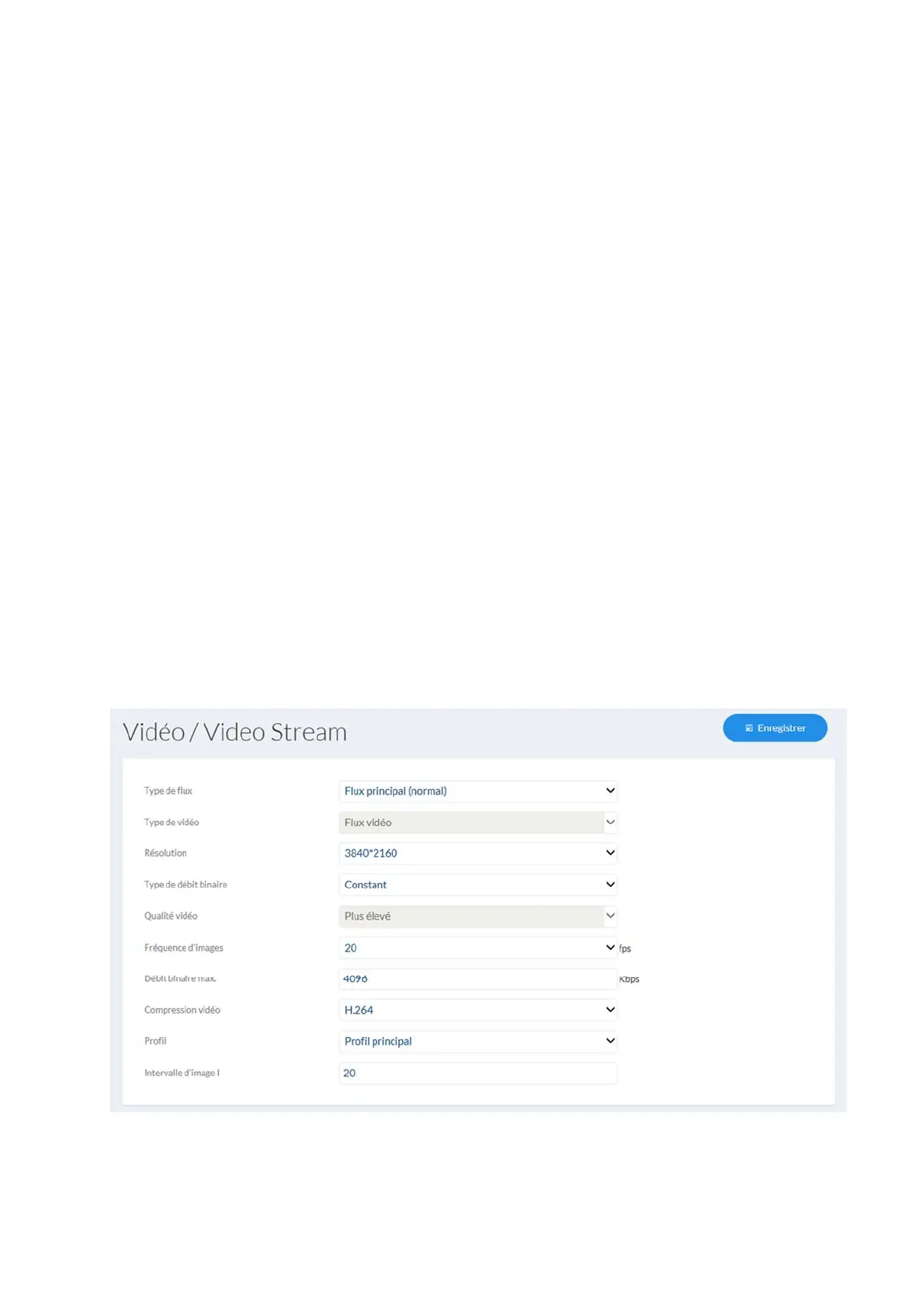 Résolution : Sélectionnez la résolution du flux vidéo.