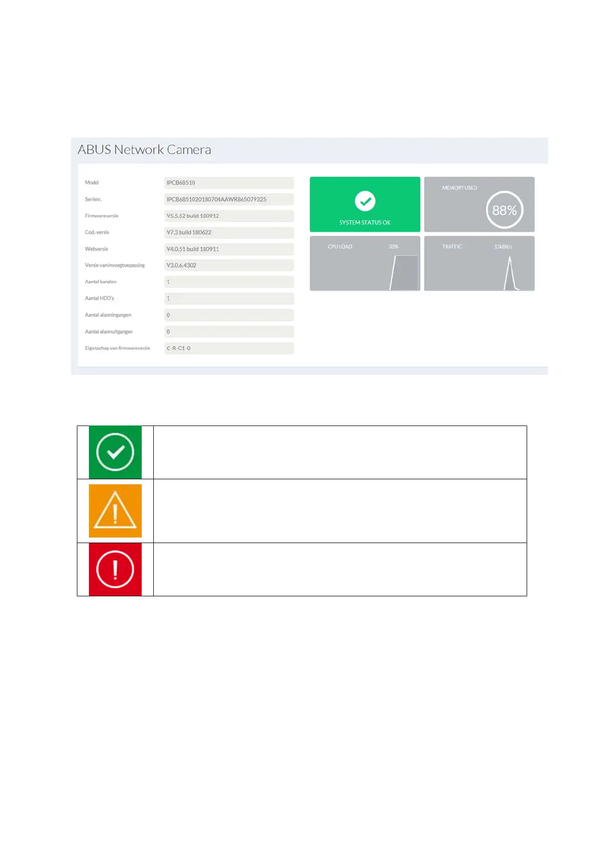 In het gedeelte rechtsboven wordt de algemene toestand van het systeem met een symbool