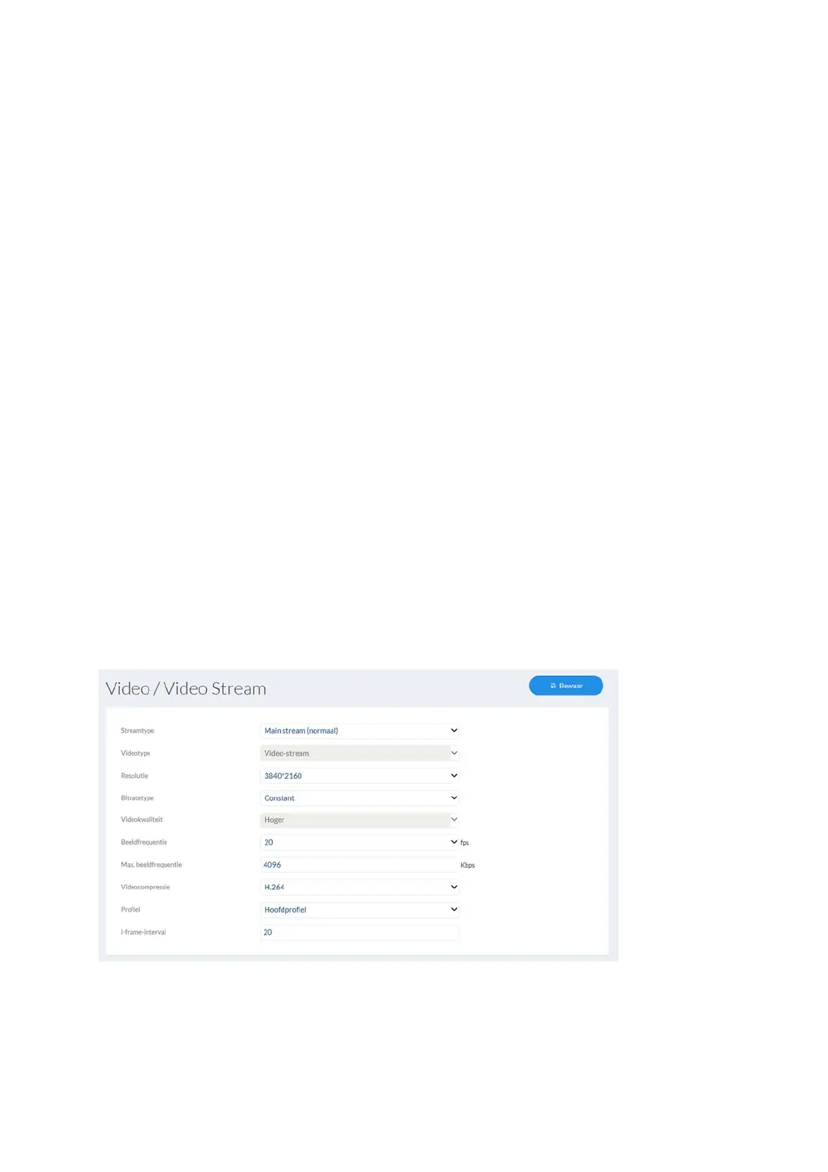 I-Frame interval: Selecteer hoe vaak een I-frame (alleen bij H.264) moet worden