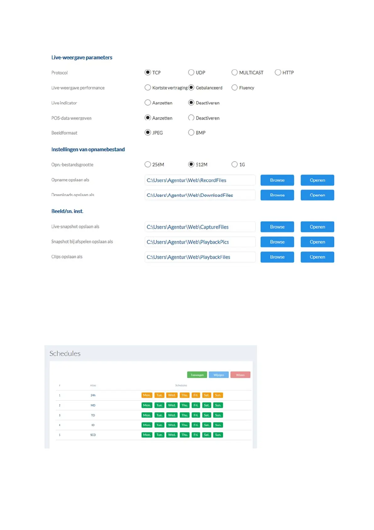 Hier kunnen tot 10 verschillende tijdschema's voor later gebruik in de gebeurtenismanager