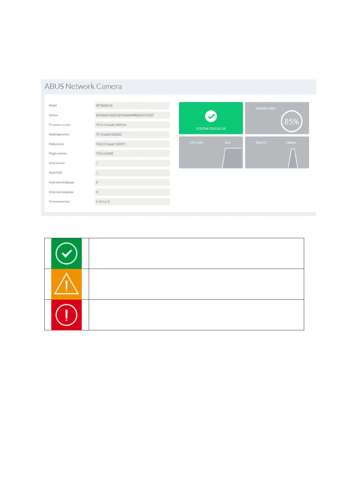 I det øverste højre område vises systemets generelle tilstand via et symbol.
