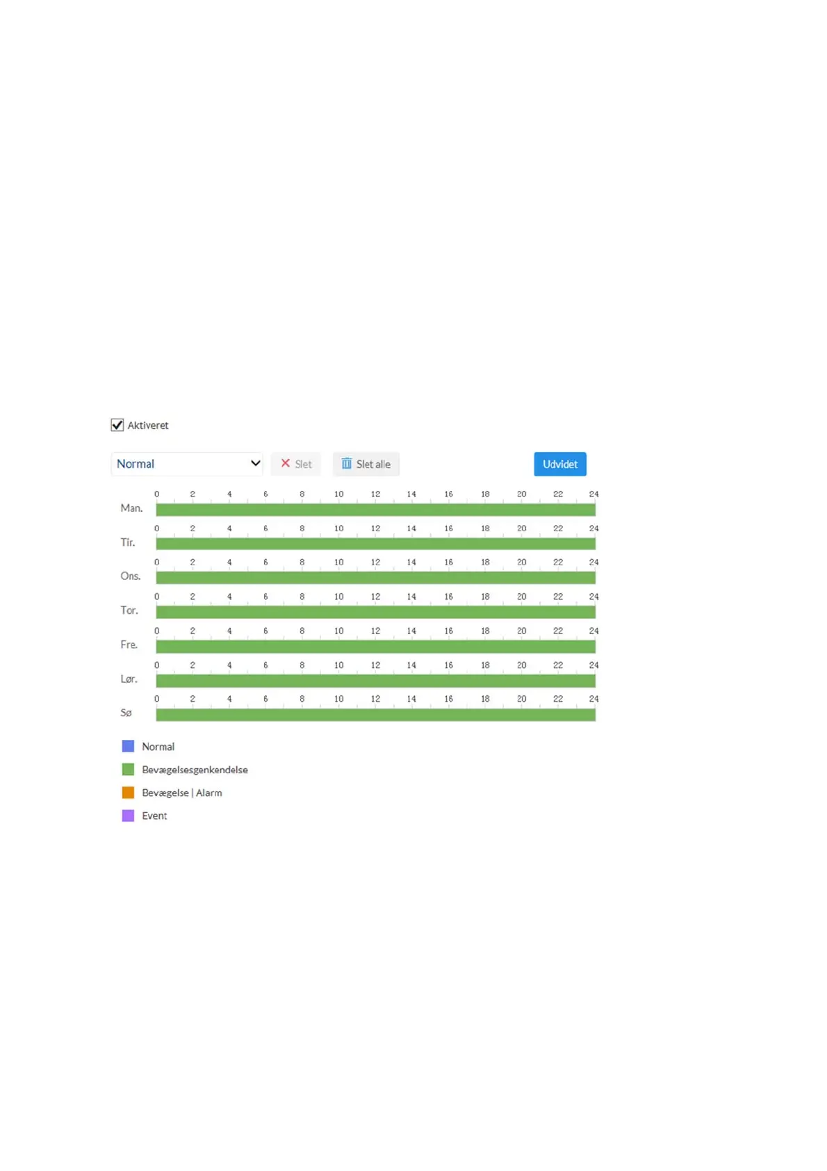 Aktiver optagelsesplan: Efter aktivering og konfiguration gemmes videodata enten