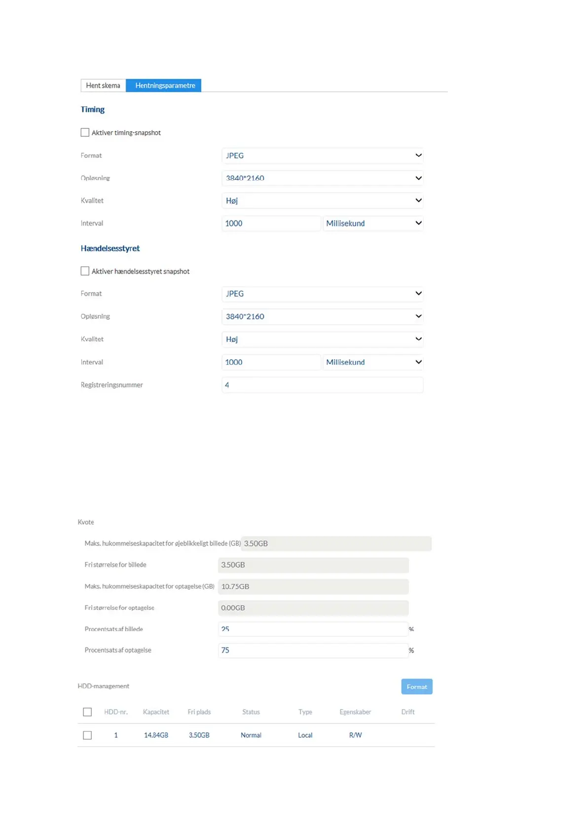 Format: Formaterer det valgte lagringsmedie (bemærk: Alle data slettes).