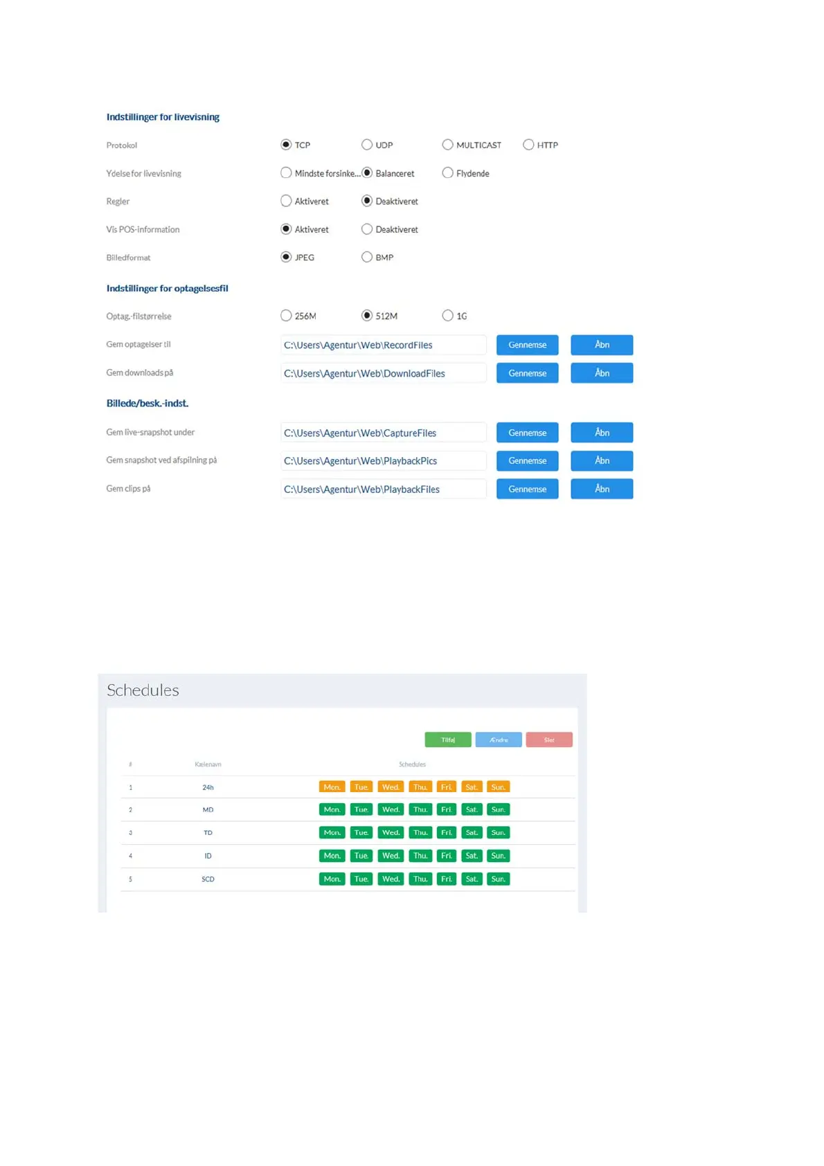 På dette sted kan der indstilles op til 10 forskellige tidsplaner til senere anvendelse i