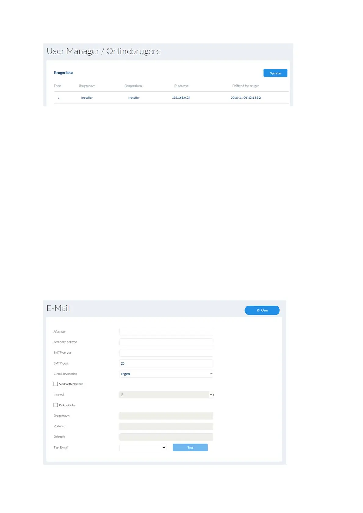 For at kameraet kan sende e-mails ved bestemte hændelser, skal SMTP/e-mail-funktionen
