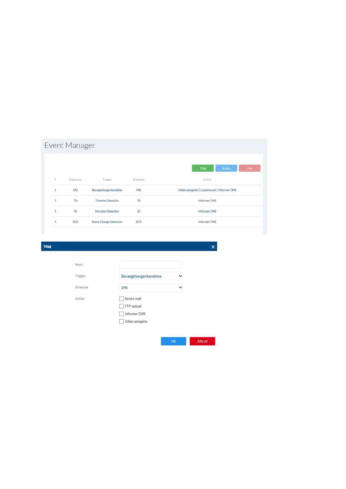 Handling: På denne side kan en eller flere handlinger bestemmes for