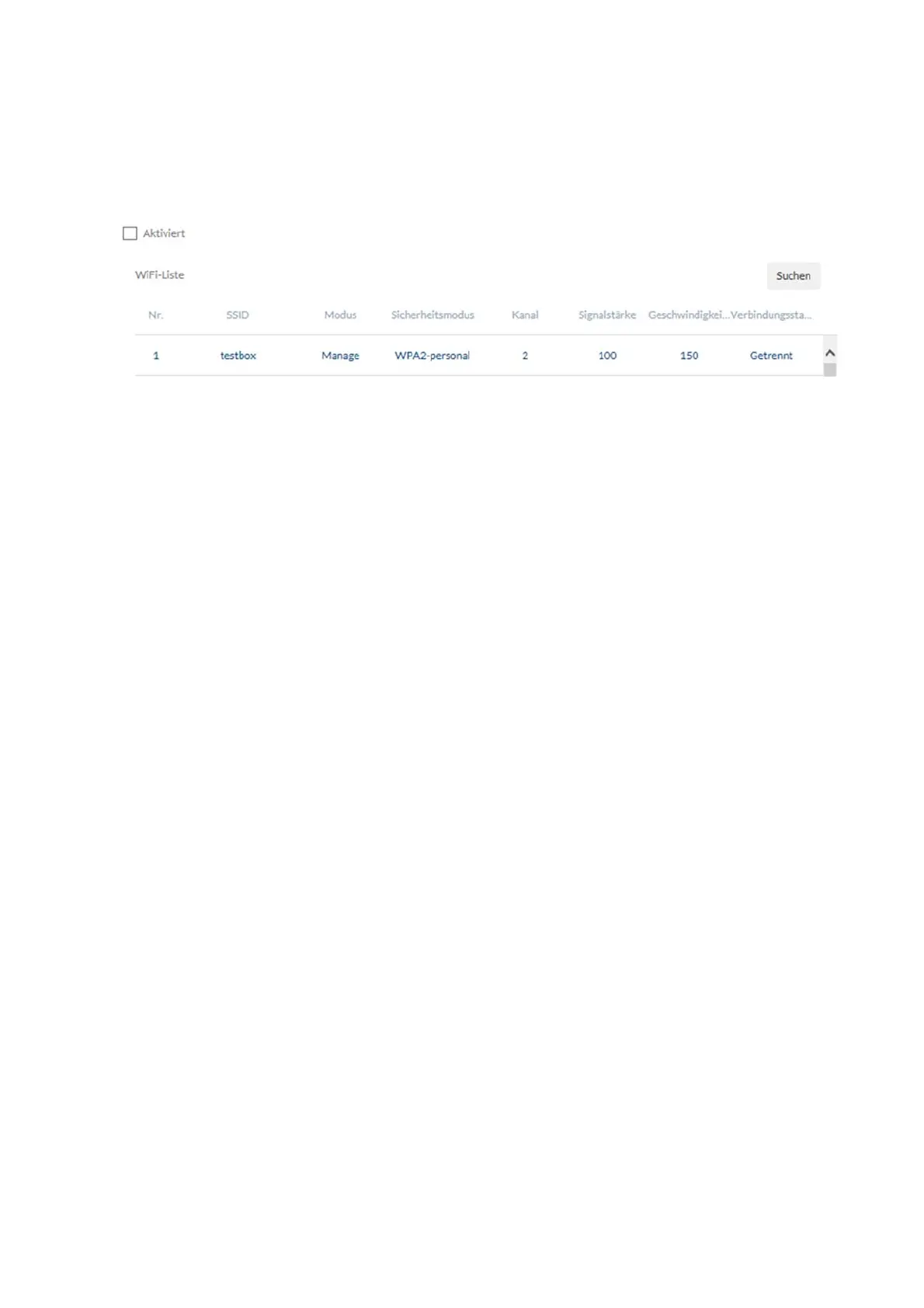 WiFi-Liste: Hier werden die verfügbaren WiFi Netzwerke angezeigt.