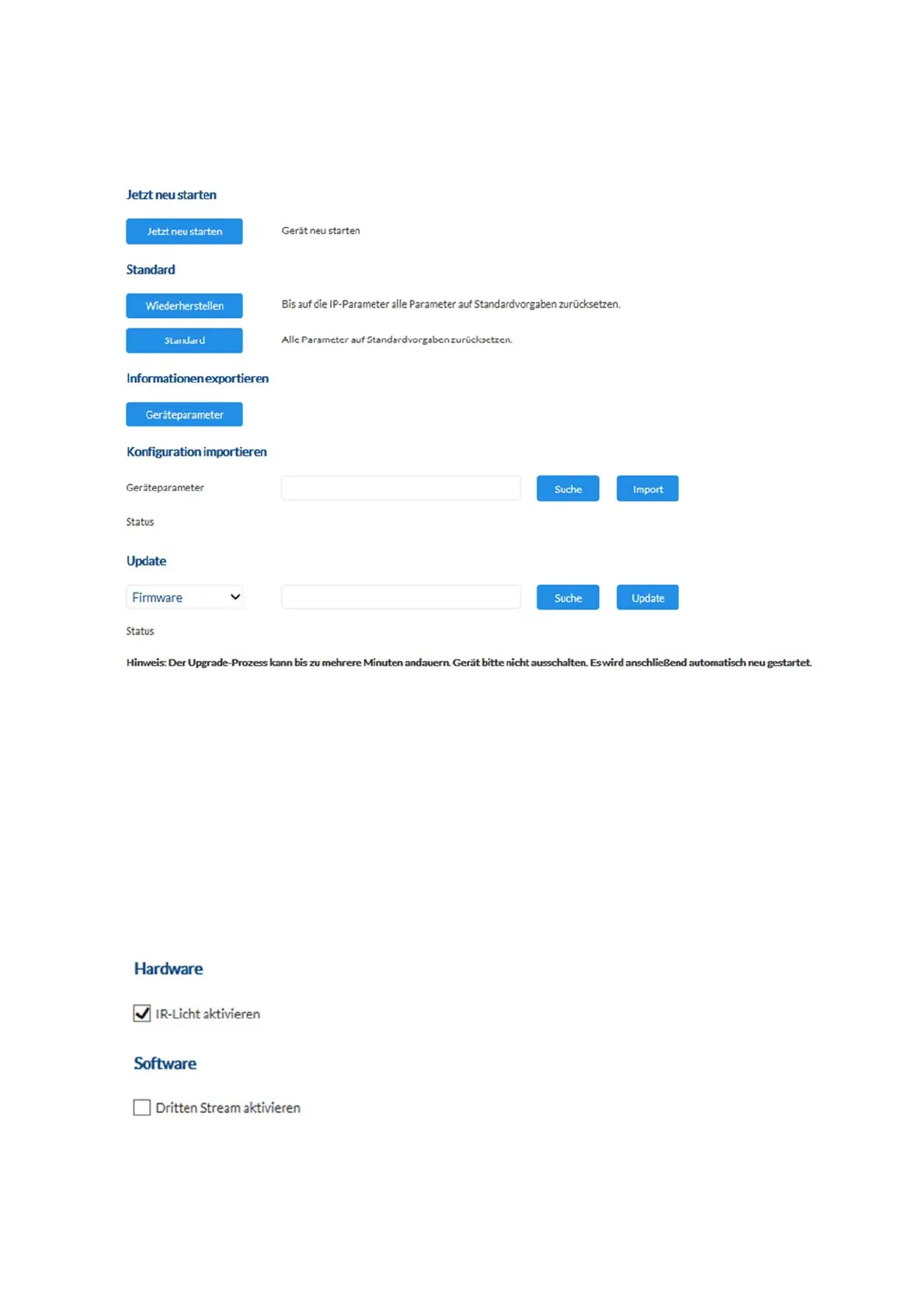 IR Licht aktivieren: Per Standard ist das integrierte IR Licht in den Kameras
