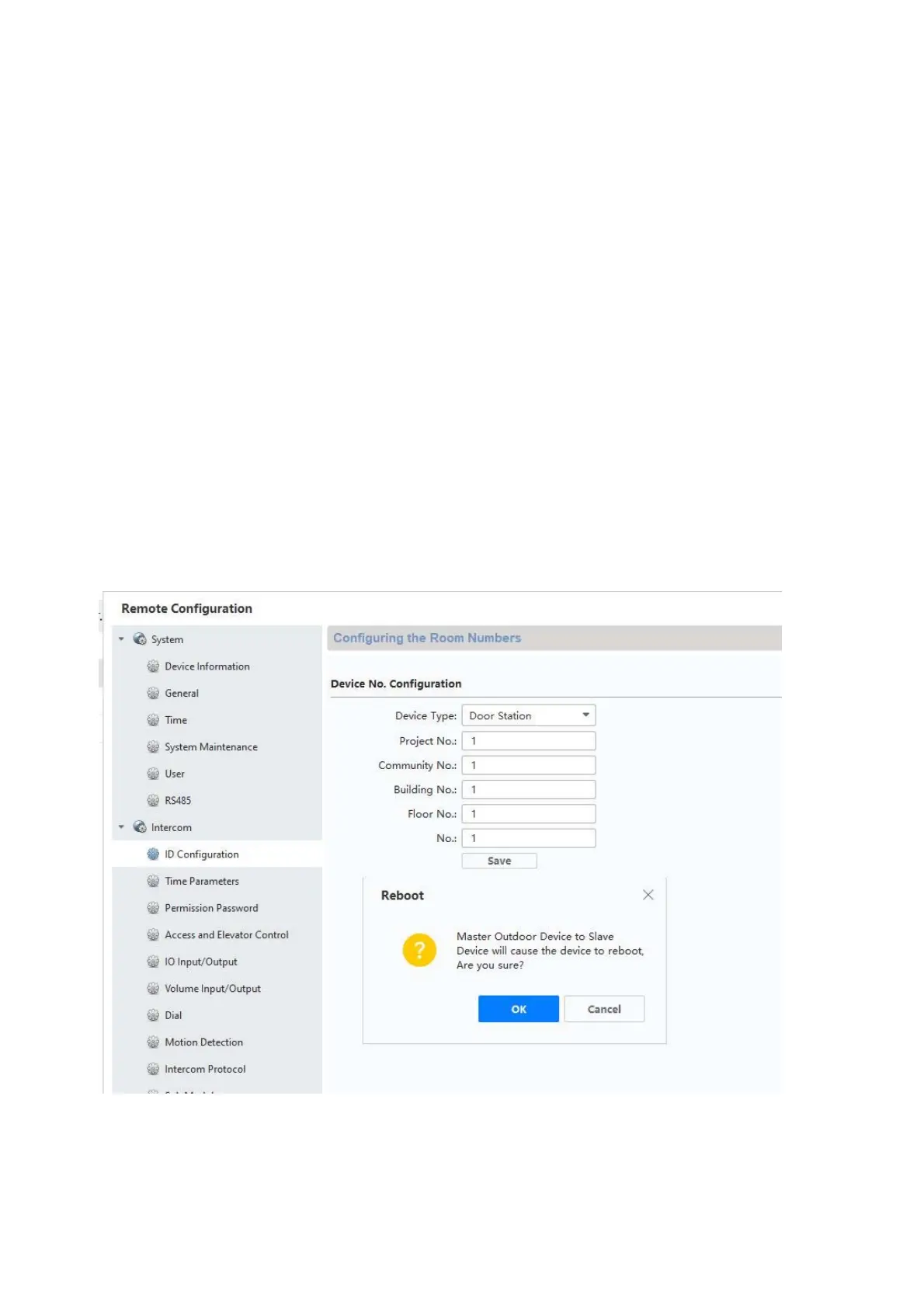 4) Now turn to “Room Number” under “Intercom”. The numbers for the back door are entered
