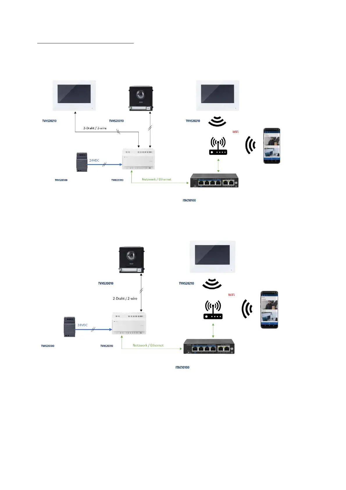 Cet exemple montre le fonctionnement mixte d'un module de porte vidéo via 2 fils avec un