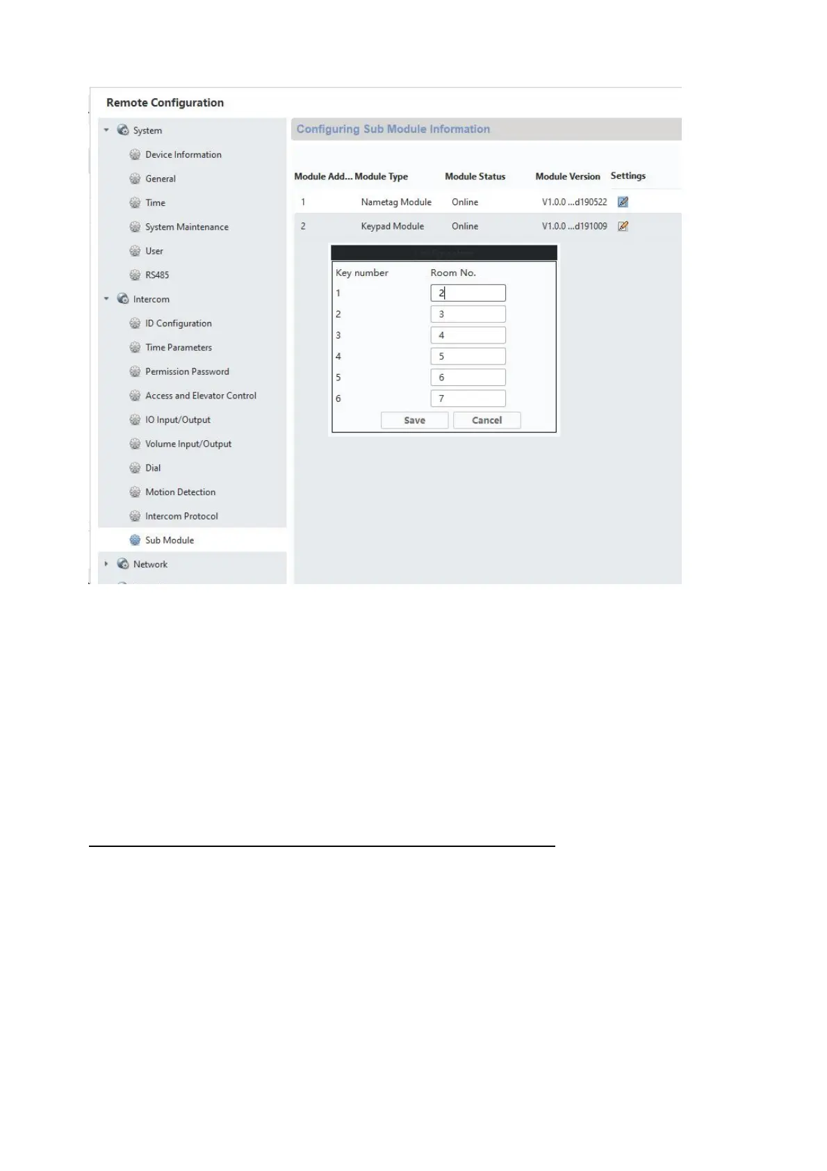 software en het appartement/woningnummer onder "room.No.:" in het menu "Intercom"/Room