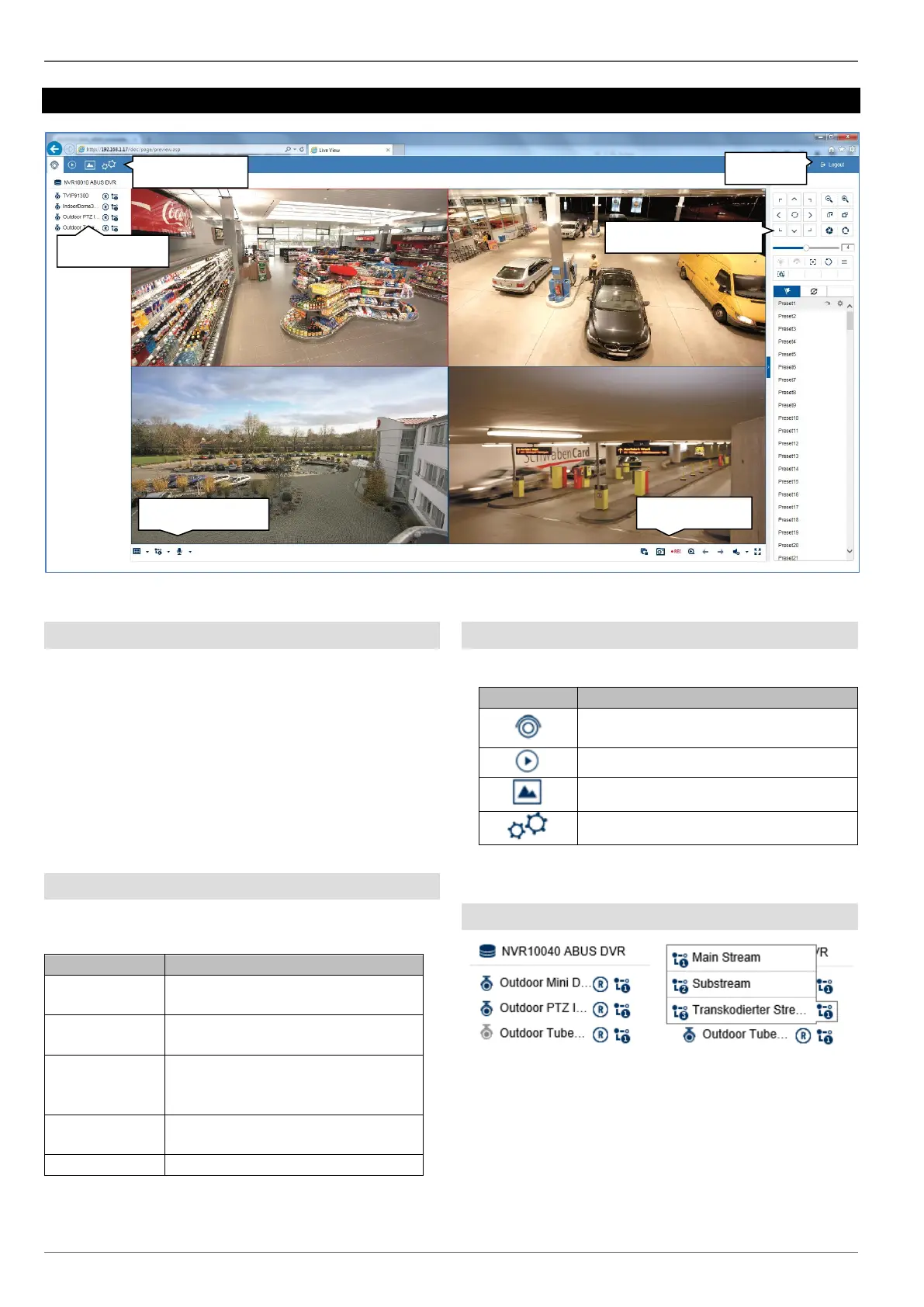 the web interface. The live image function provides the