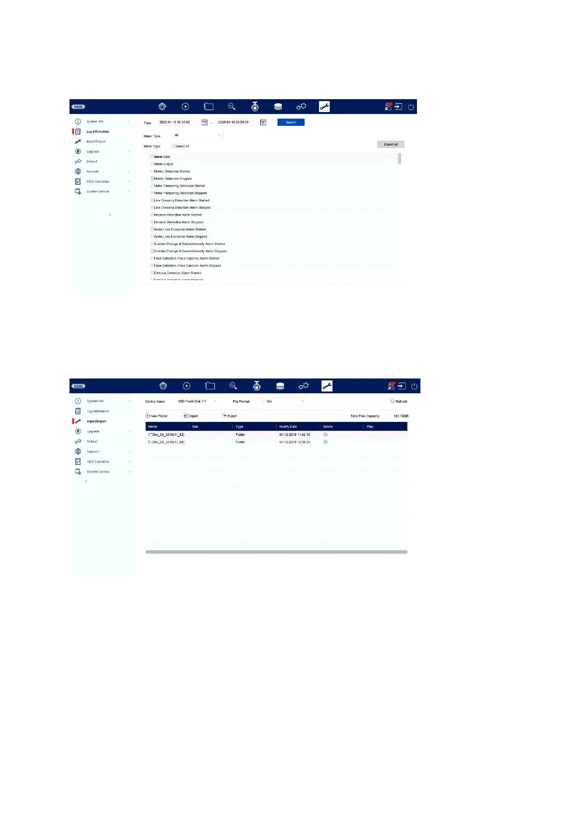Abus NVR10020P - Log Book; Import;Export