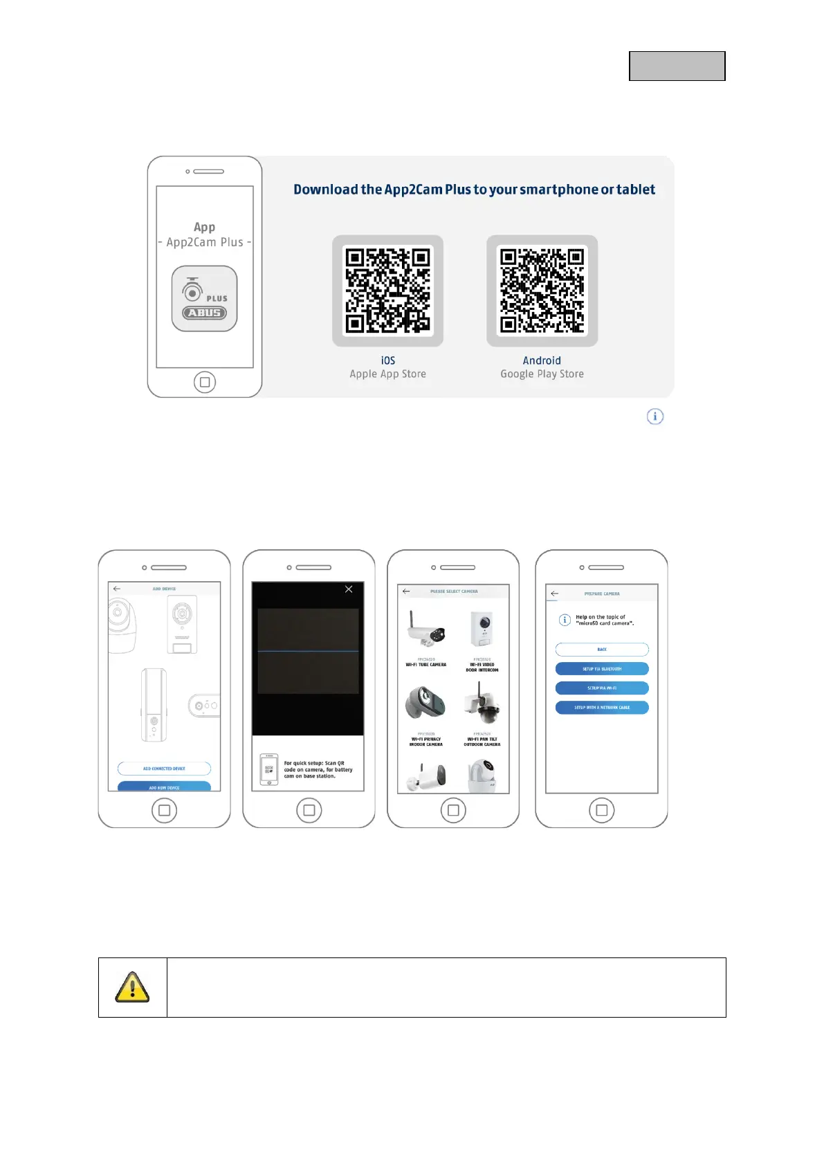 For optimal start-up, the camera and the smartphone/tablet must be as close to each