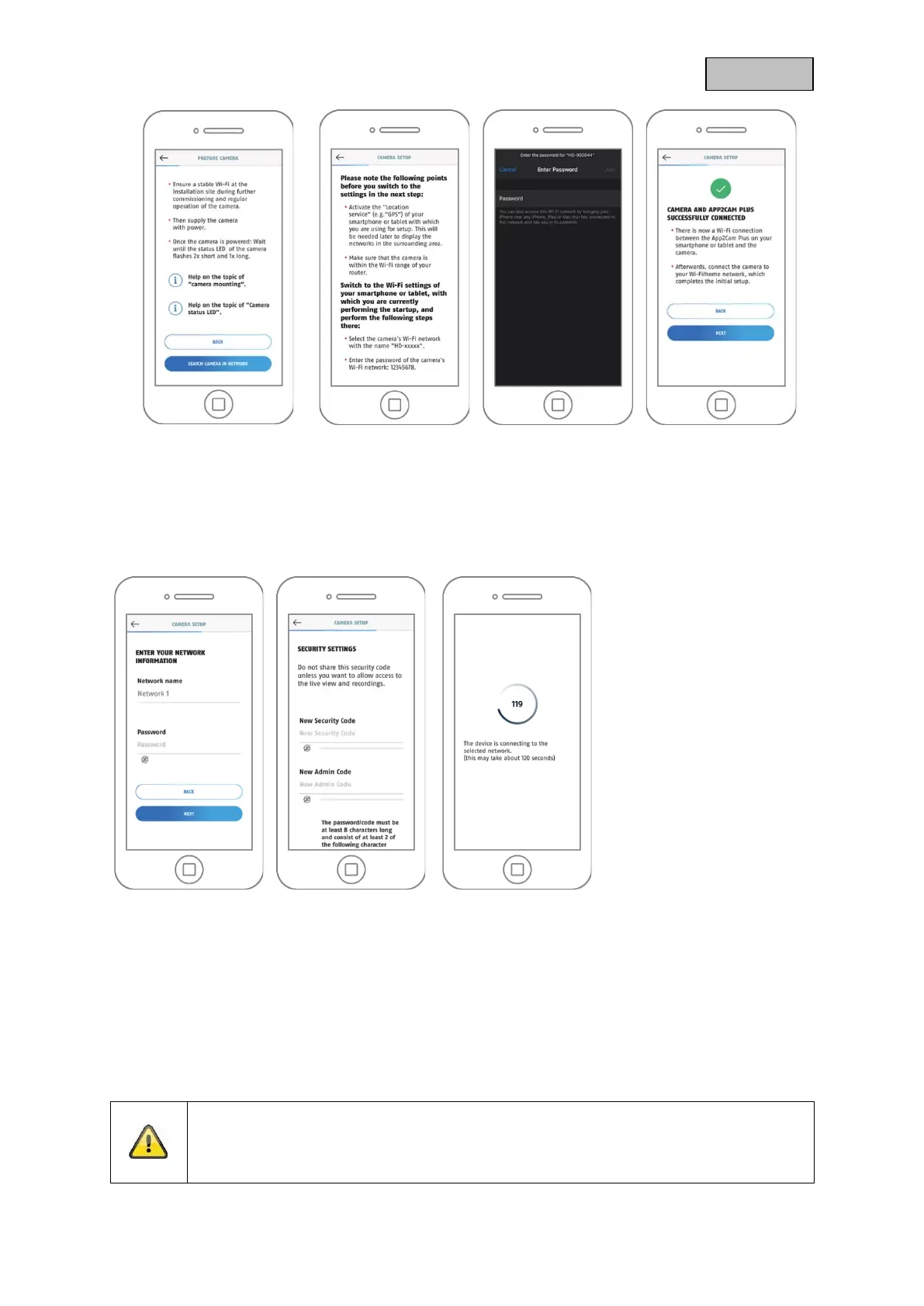 XXXXXX". The password for the camera's WiFi access point is: "12345678".