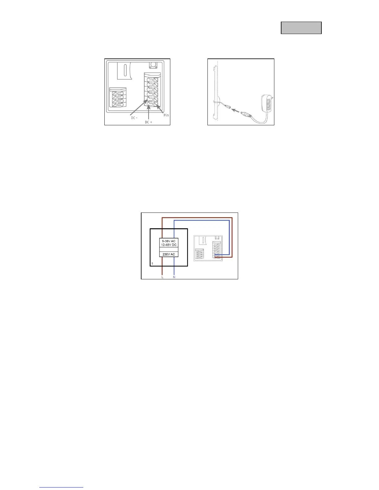 Should you wish to use the intercom with the accessories provided, connect the power supply by