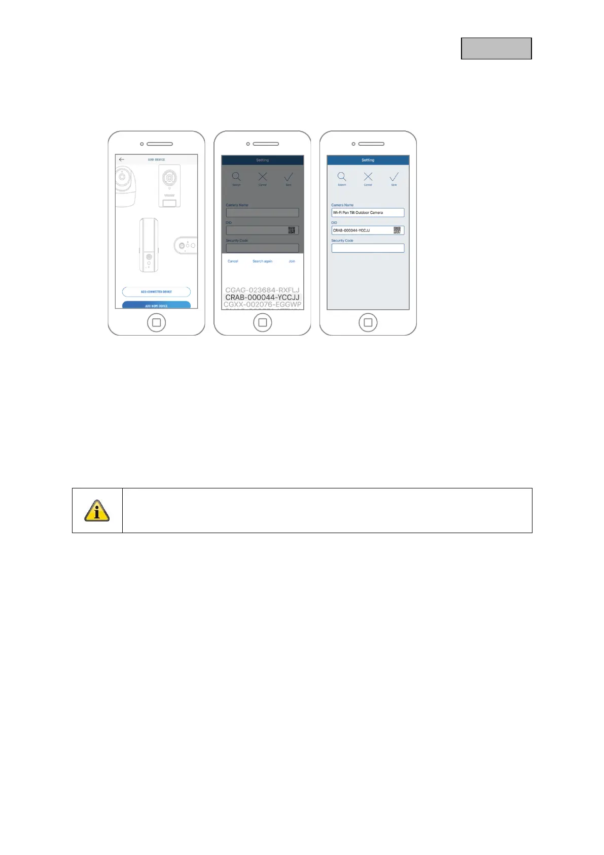 the back of the camera, search for the camera in the network with the "Search" button or enter the DID