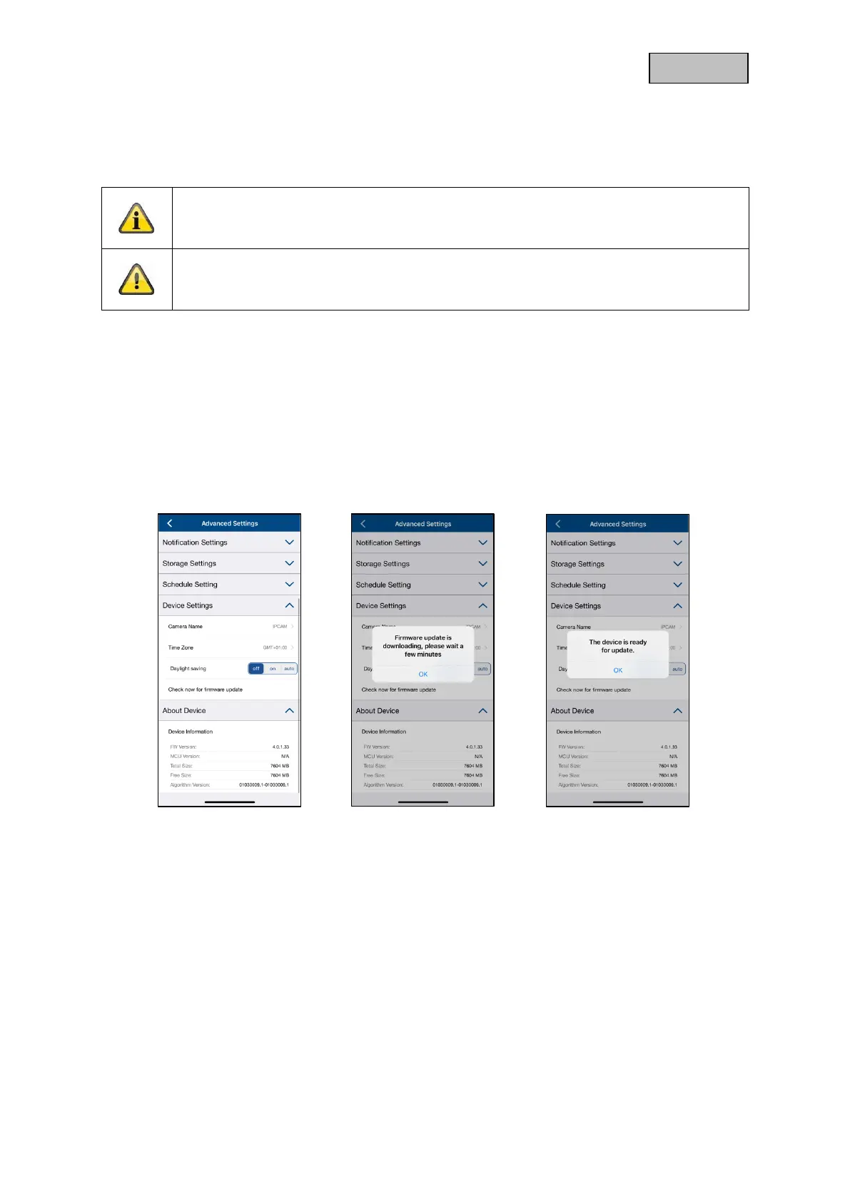 After the camera has downloaded the firmware, the next time you enter the advanced settings, a notice