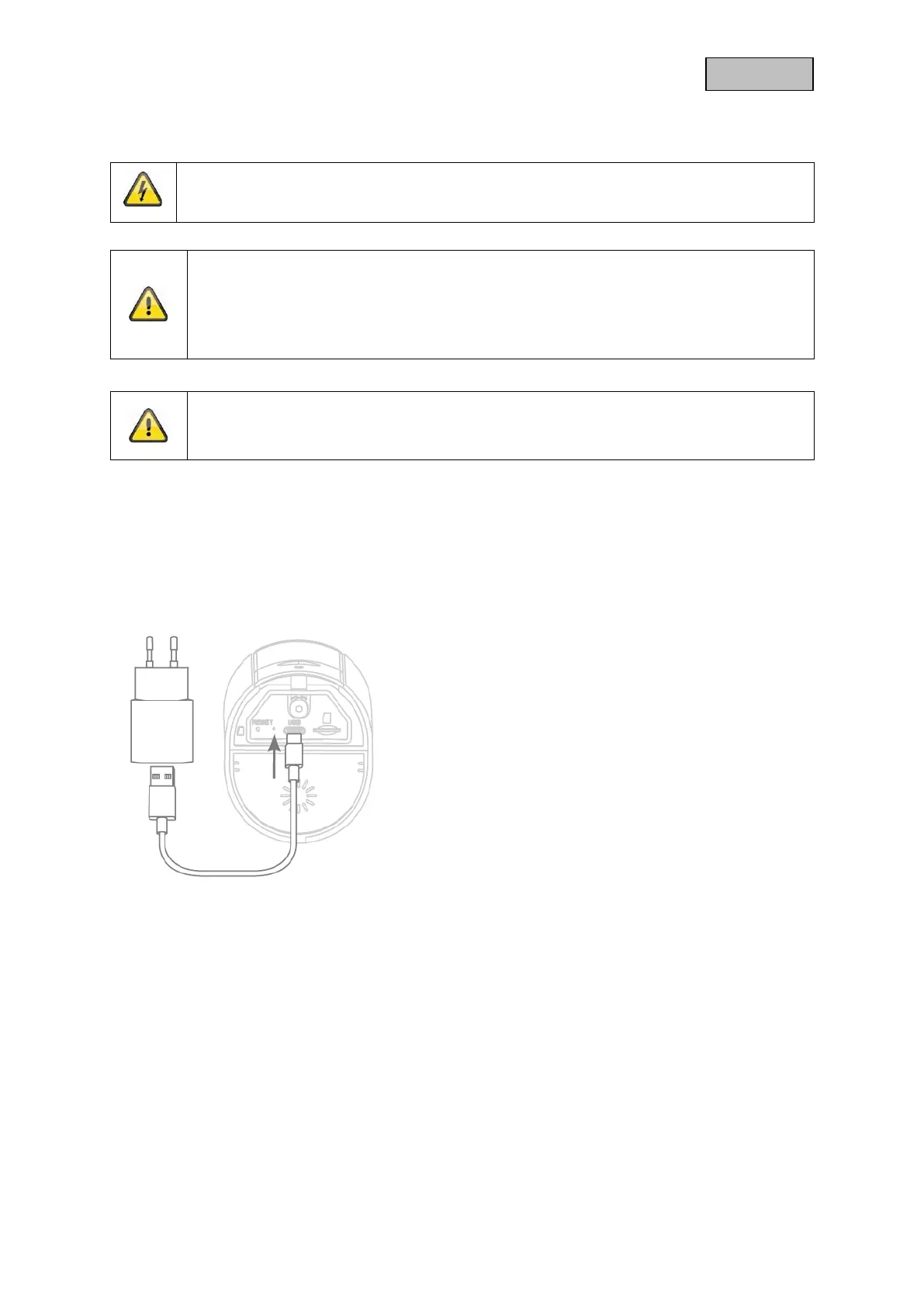 charging plug (5V, 1 A) for the temporary power supply.