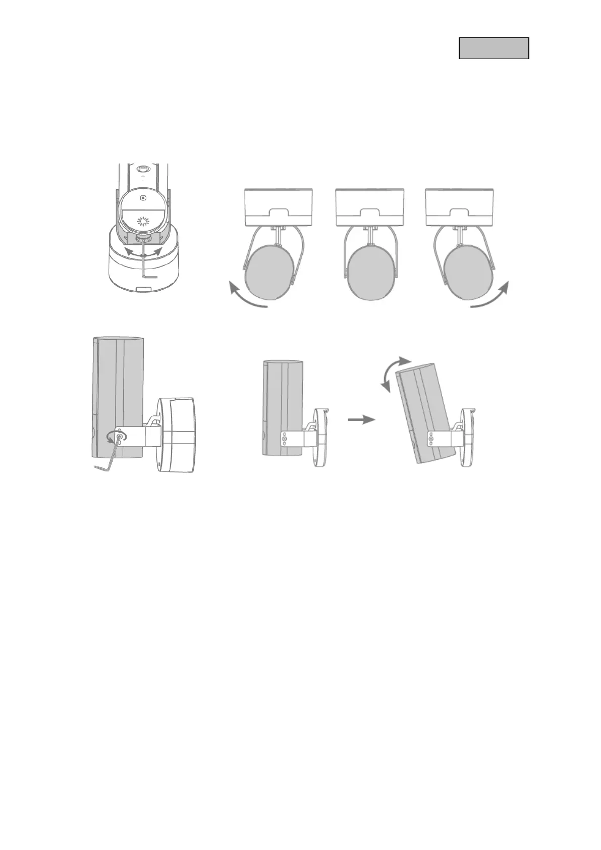the bracket using the Allen key and the two screws on the bracket to pan and/or tilt the camera. Tip: