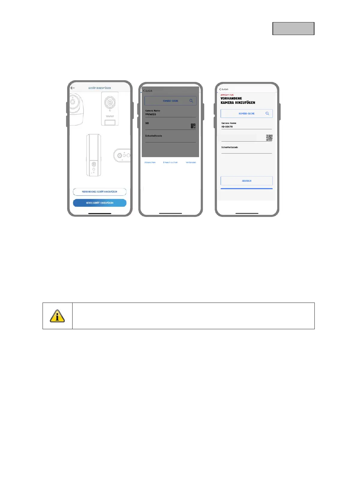 Enter a name for your camera. To enter the DID you have the following options, scan the QR code;