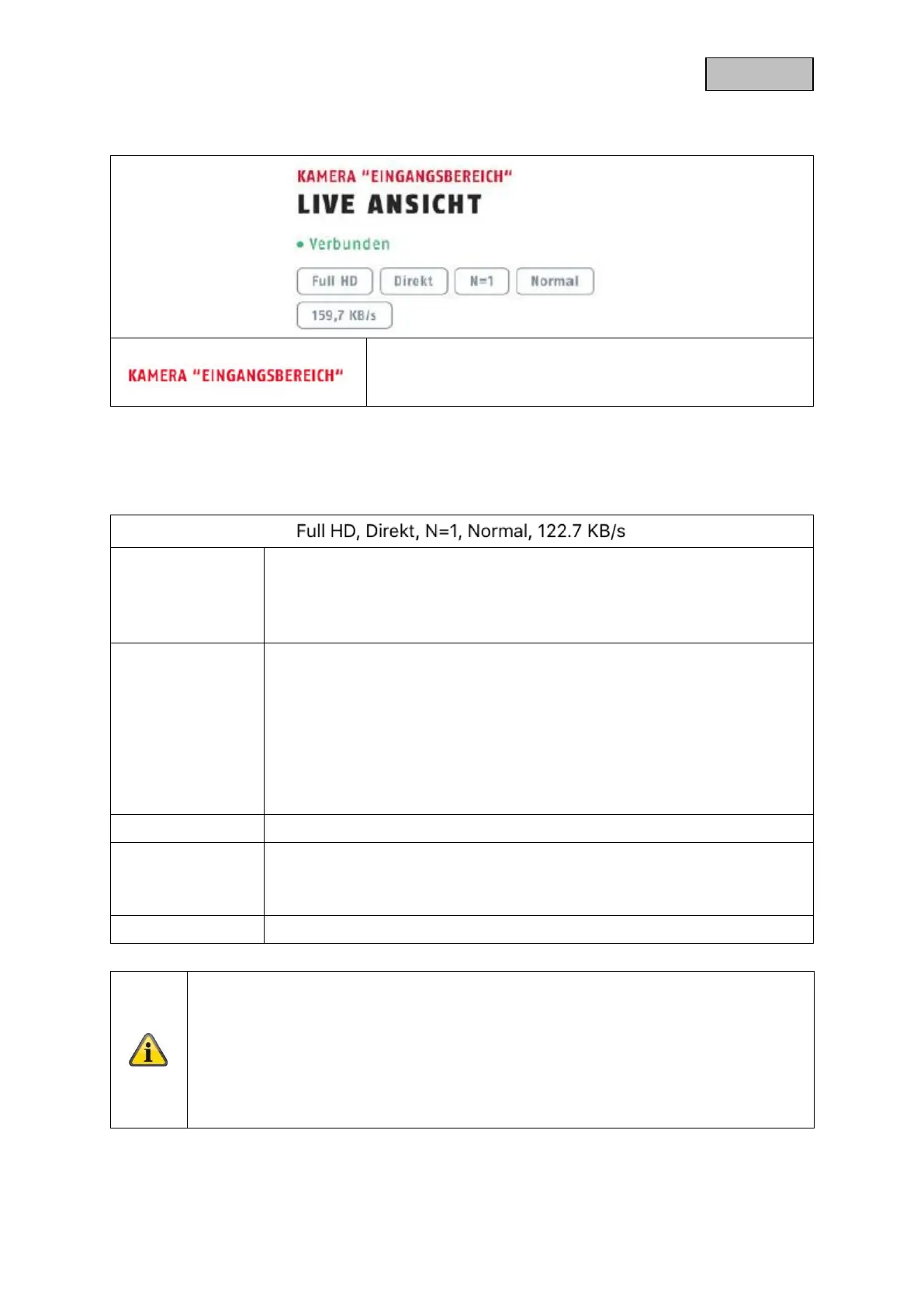 Display of the resolution of the current stream
