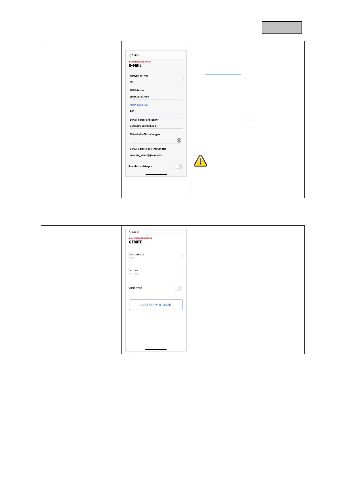Make the device settings for your camera