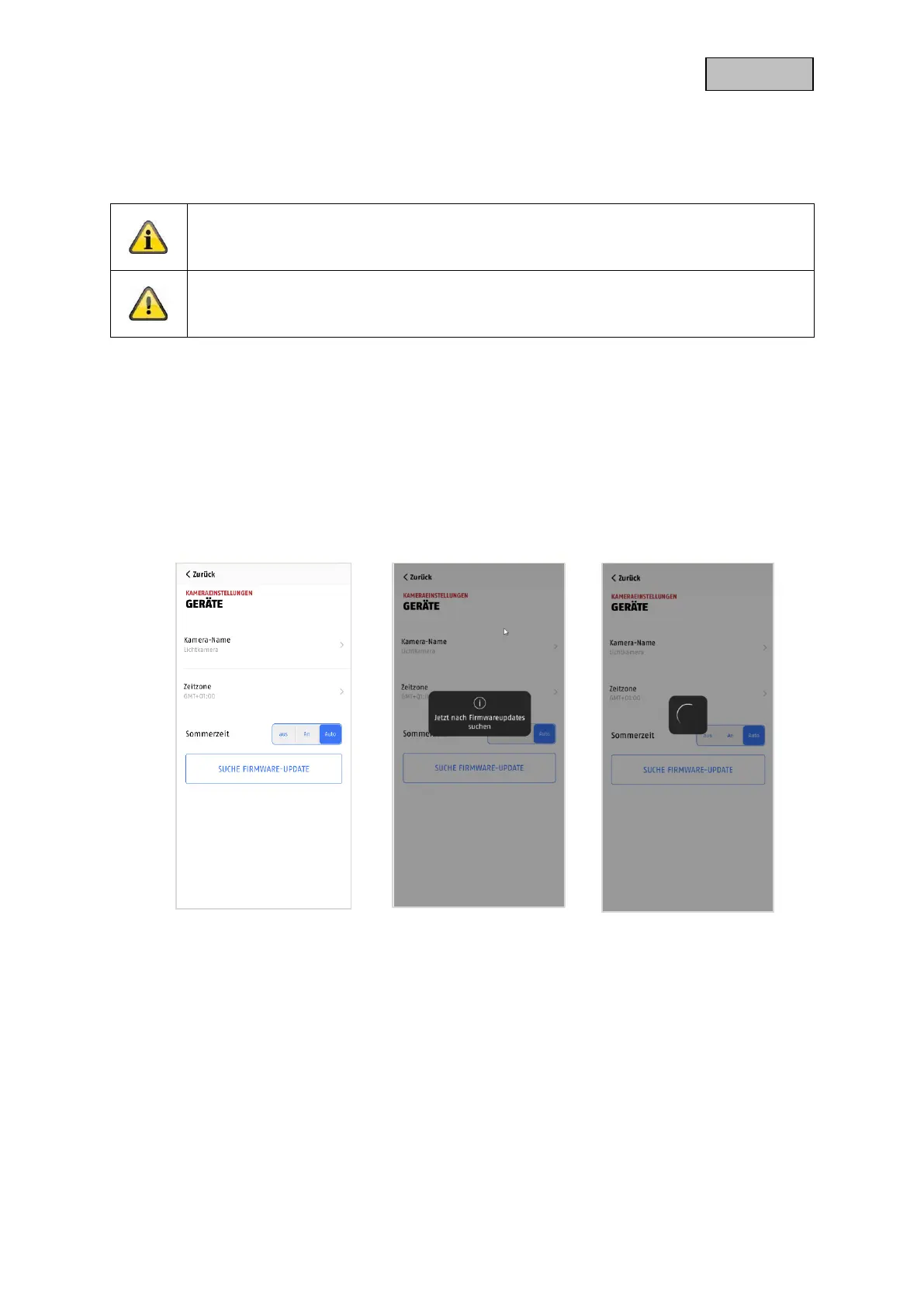 The update of the camera takes approx. 3-5 minutes. Do not disconnect the camera from