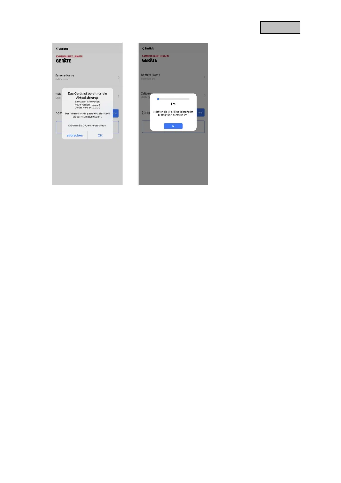 After the camera has downloaded the firmware, the next time you enter the advanced settings, a notice