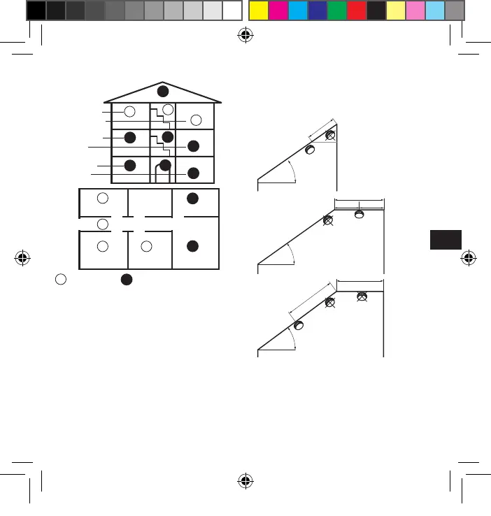 - Bij plafondbalken <20 cm hoogte één melder in het