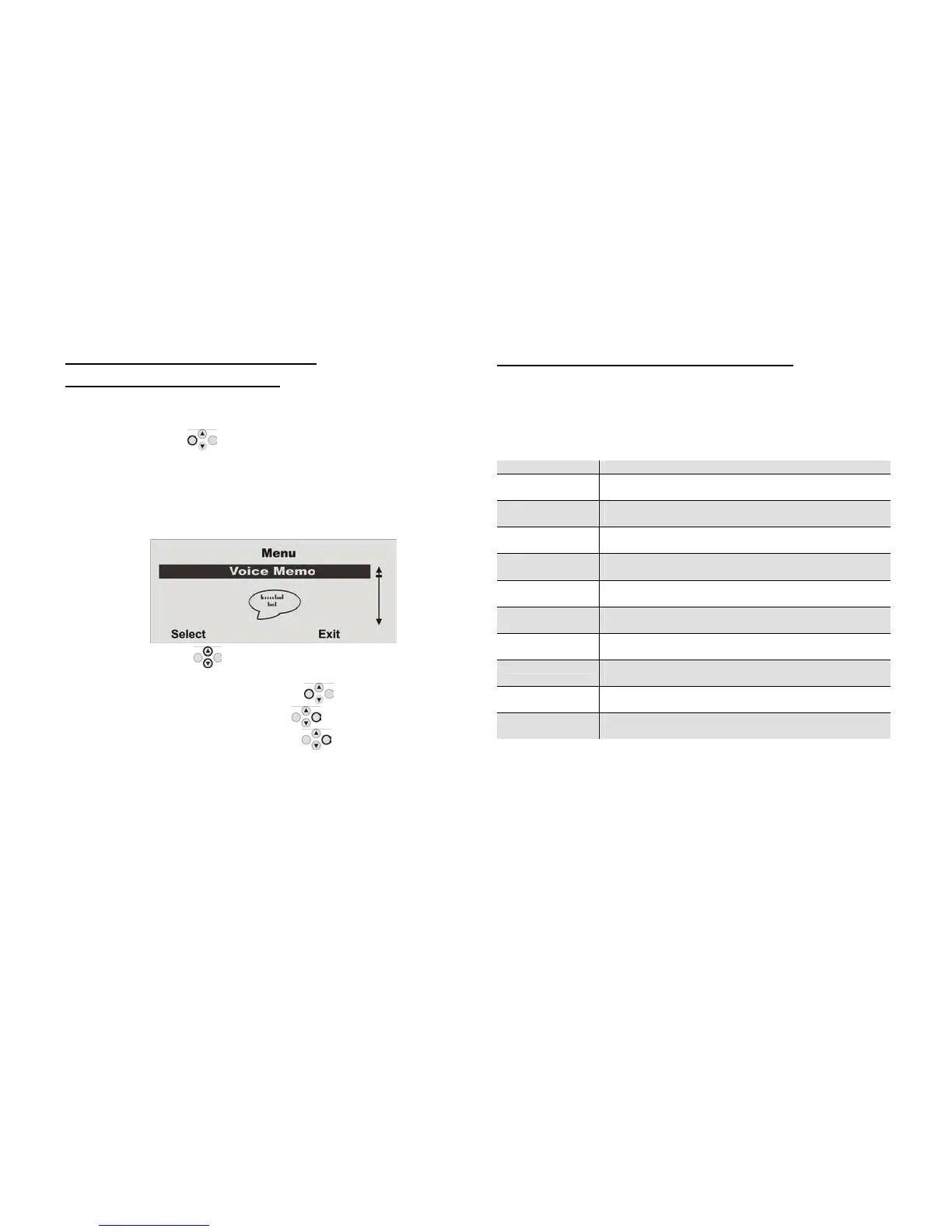 To select a menu item, press the control button under Select.