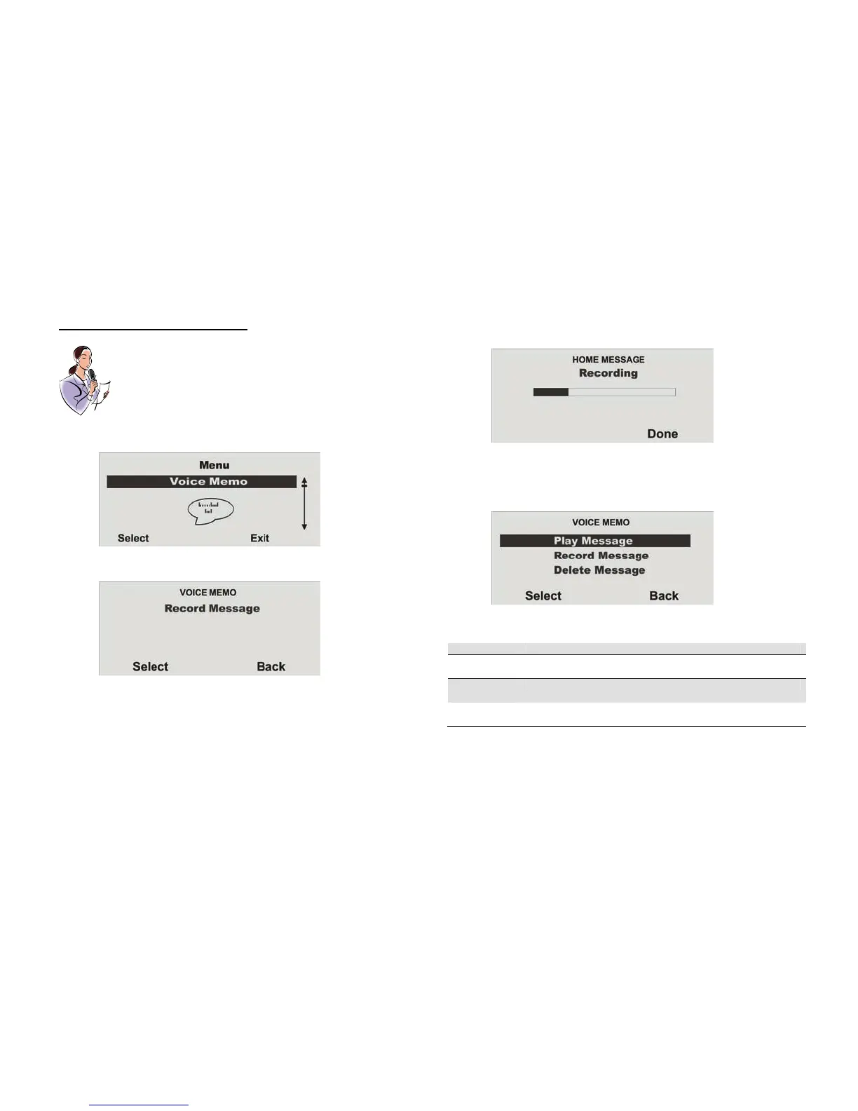 By pressing Select you can record a voice message.