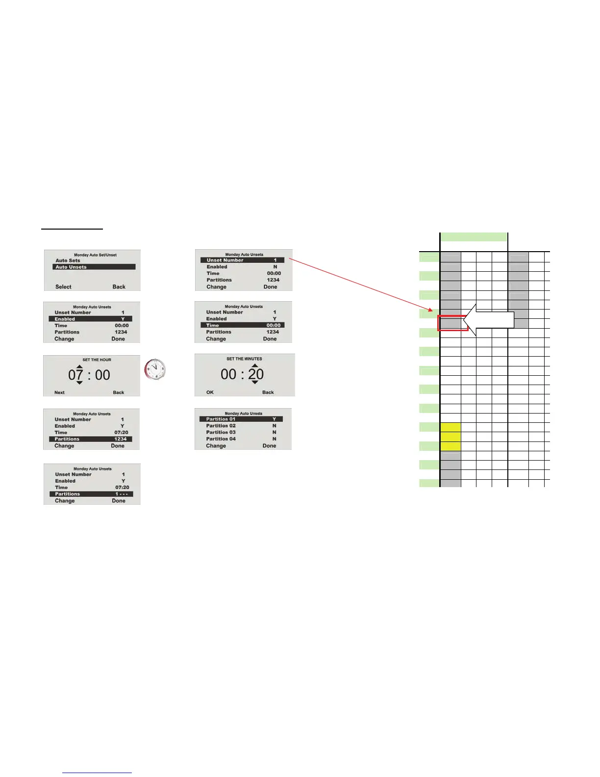 Select the time for the Auto Unset (07:20).