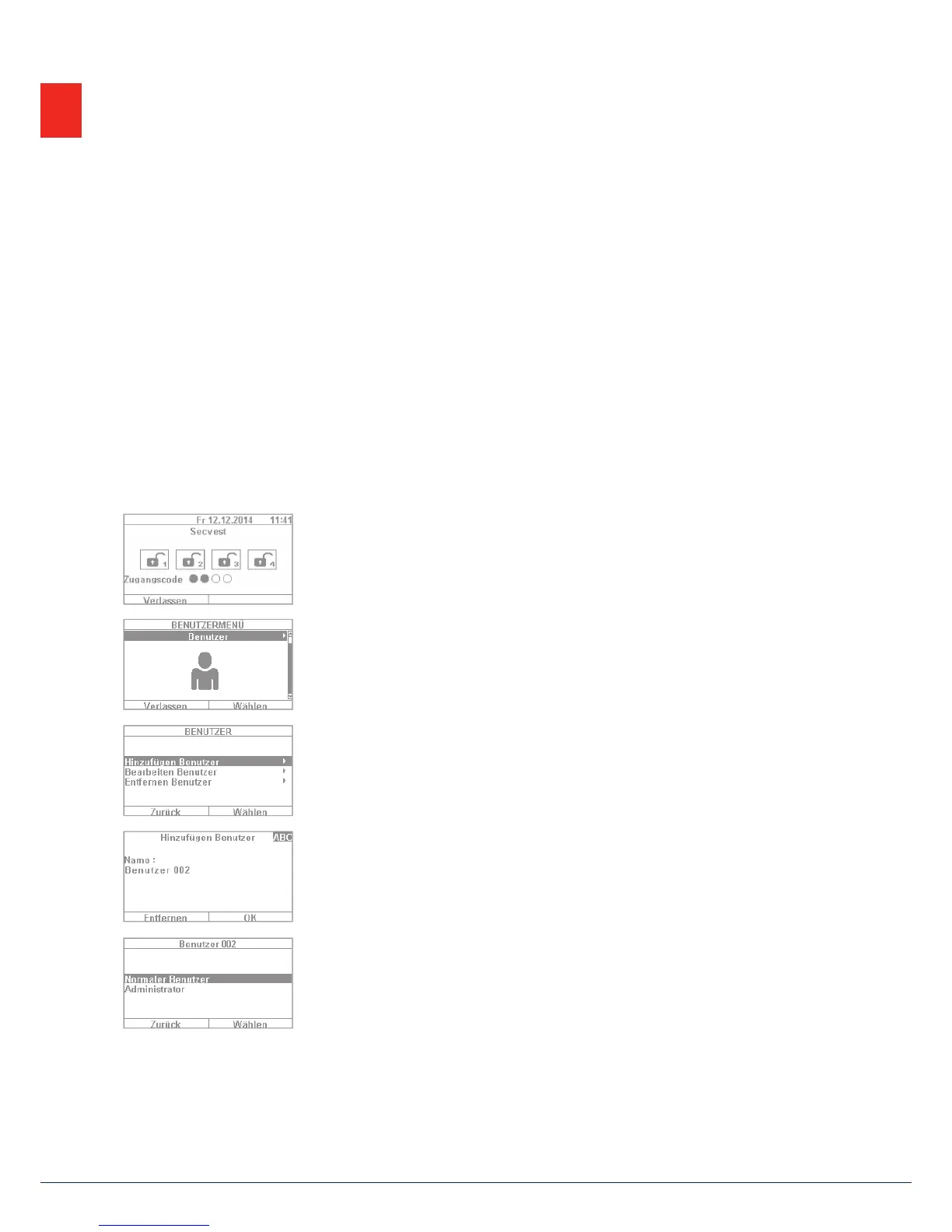 The user menu helps you con gure certain basic functions of the system. You can create and manage users,