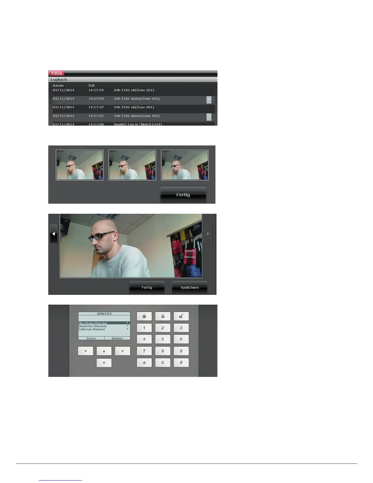 Secvest menu via the web interface
